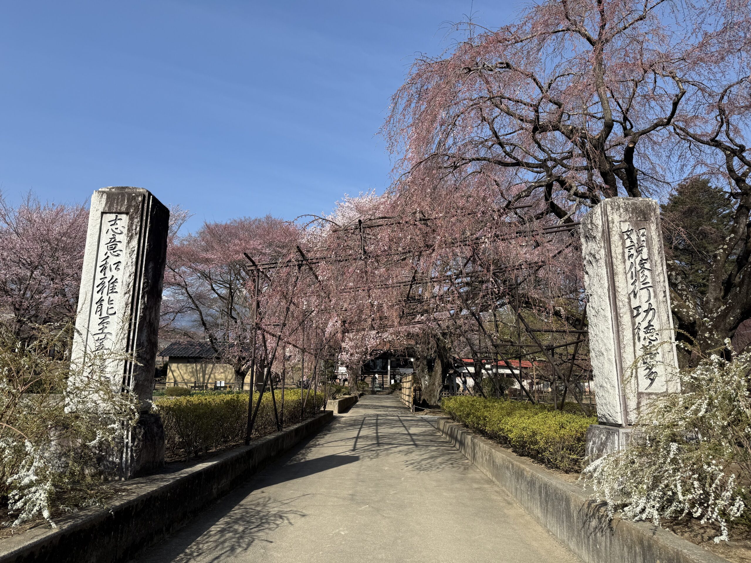 身延枝垂れ桜の子桜も咲き始め、綺麗な桜のトンネルとなってきました🌸
