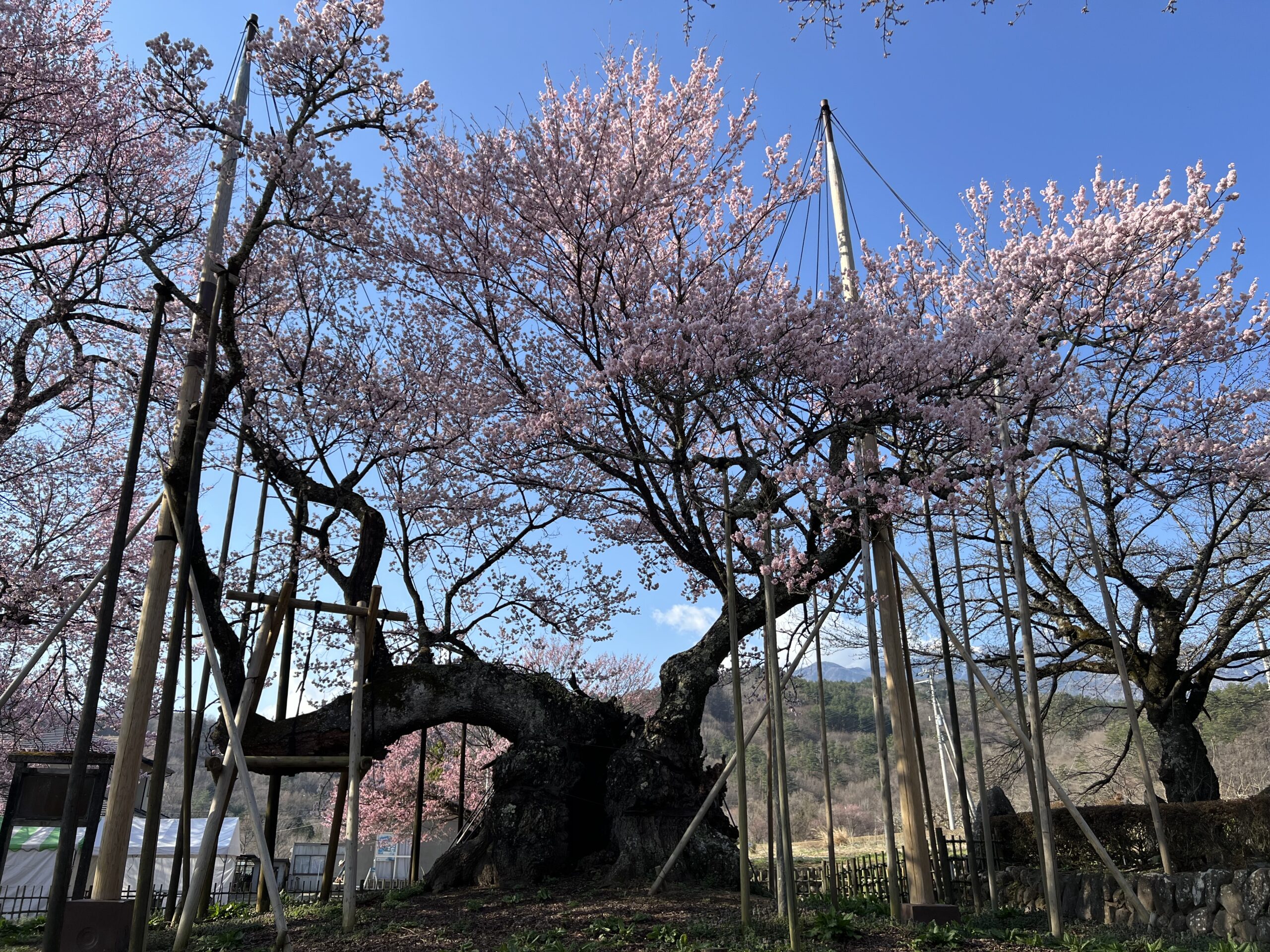 一昨日開花した神代桜は、本日満開近い状態まで花を咲かせています。